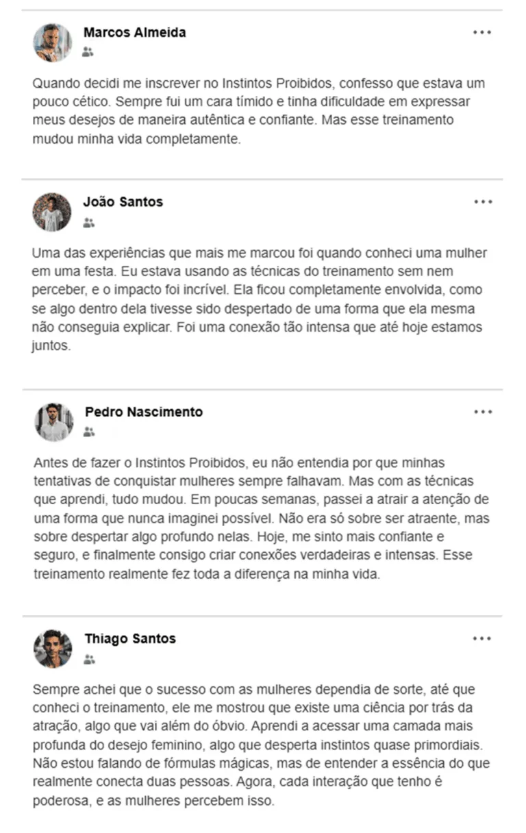 Não, o treinamento é 100% online. Você receberá o acesso a sua área de membros com todo o conteúdo do treinamento “Instintos Proibidos” por E-mail e deverá acessar diretamente pelo seu computador sem necessidade de materiais físicos.